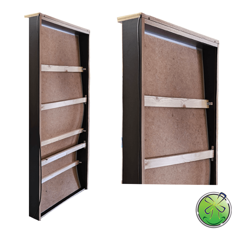 Manchmal möchten Sie einfach die Gewissheit haben, dass keine Splitter entstehen, wenn ein Spiegel aus irgendeinem Grund doch einmal zerbricht. In diesem Fall können Sie sich dafür entscheiden, die Rückseiten von uns zusätzlich verstärken zu lassen. Dazu versehen wir den gesamten Spiegel im Produktionsprozess auf der Rückseite mit einer doppelseitigen Klebebandschicht. Darauf befestigen wir dann eine Hartfaserplatte, die wir an den „schwachen” Stellen zusätzlich verstärken.